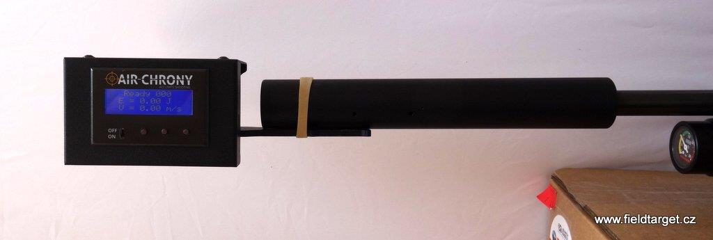 The Air Chrony Mk1 is a simple instrument, but it has a surprising number of features that are exactly the same as the Mk3. It is attached to the mouth of the barrel by means of enclosed rubber bands or simply by taping. The way of attaching would certainly deserve even further development, on the other hand, this design is absolutely versatile and I consider it better than the case in the case of Combra, which I have seen a nice few shot. Gripping at the end of the barrel is quite a significant advantage of the model Mk1. When attaching the chronometer on the barrel is no need to hit the hole as with his larger brother, and this is quite a nice feature, especially when prolonged testing weapons and ammunition. The manipulation is then much more comfortable and it is also possible to shoot aimlessly at the target.