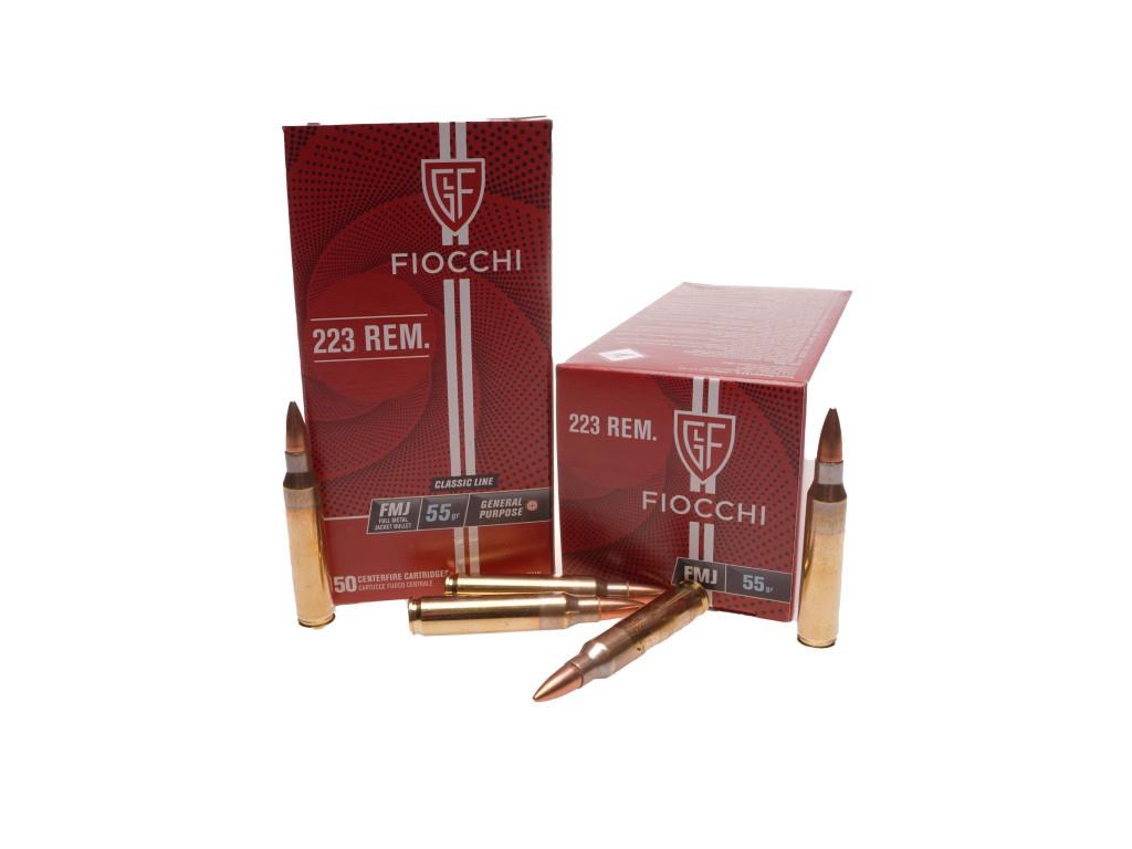 The Fiocchi Ammo - 223 Rem 55gr FMJ is a pack of 50 cartridges loaded with 223 Rem 55 grain full metal jacket bullets, ideal for plinking and target practice shooting.