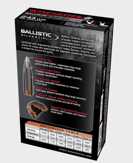 Ballistic Silvertip ammunition provides hunters proven explosive impact and extreme precision. Innovation combined with engineering excellence makes Ballistic Silvertip the choice for those who appreciate the legendary excellence Winchester is known for around the world.