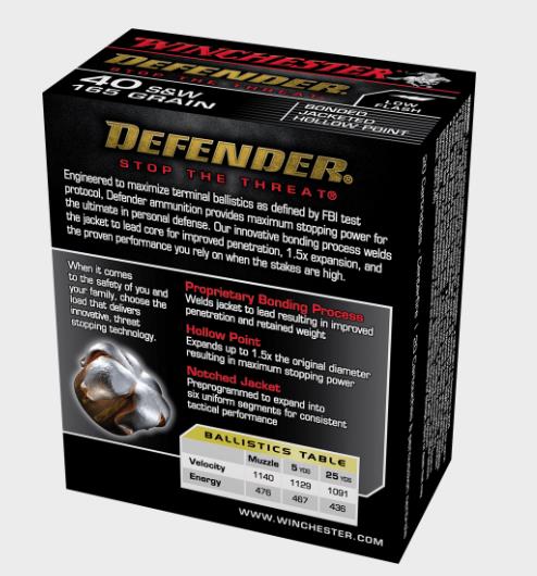 Ammo 40 S&W 165gr Winchester Bonded Jacketed Hollow Point Defender20's