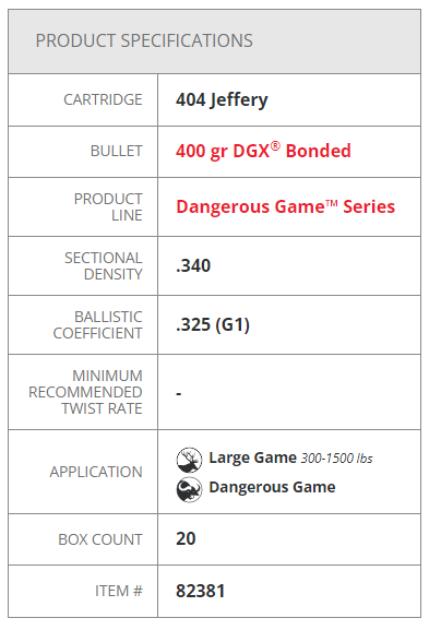 Ammo 404 Jeff .423 400Gr Hornady DGX-B 20s