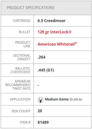 Bullets used in American Whitetail® ammunition feature our pioneering secant ogive design and exclusive InterLock® ring — a raised ring inside the jacket that is embedded in the bullet's core that keeps the core and jacket locked together during expansion to retain mass and energy.