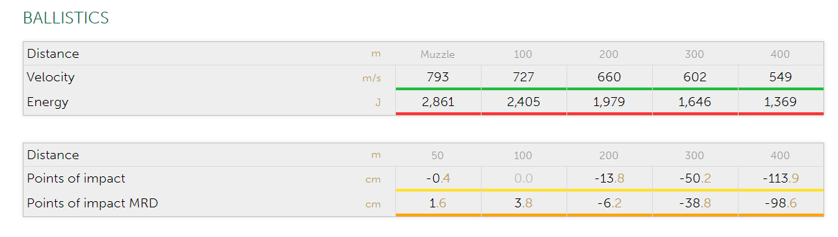 Ballistic coefficient Calculation G1: 0.417