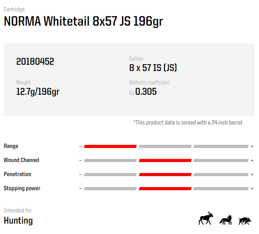 Ammo 8x57 JS 196Gr Norma Whitetail 20's