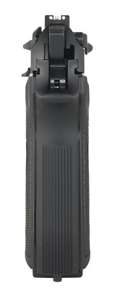 The 92FS is a double/single-action semiauto pistol that employs an open-slide, short-recoil delayed locking-block system, which yields a faster cycle time and delivers exceptional accuracy and reliability. In particular, the open-slide design practically eliminates “stove-piping” and helps flawless cycling and feeding even after thousands and thousands of rounds.