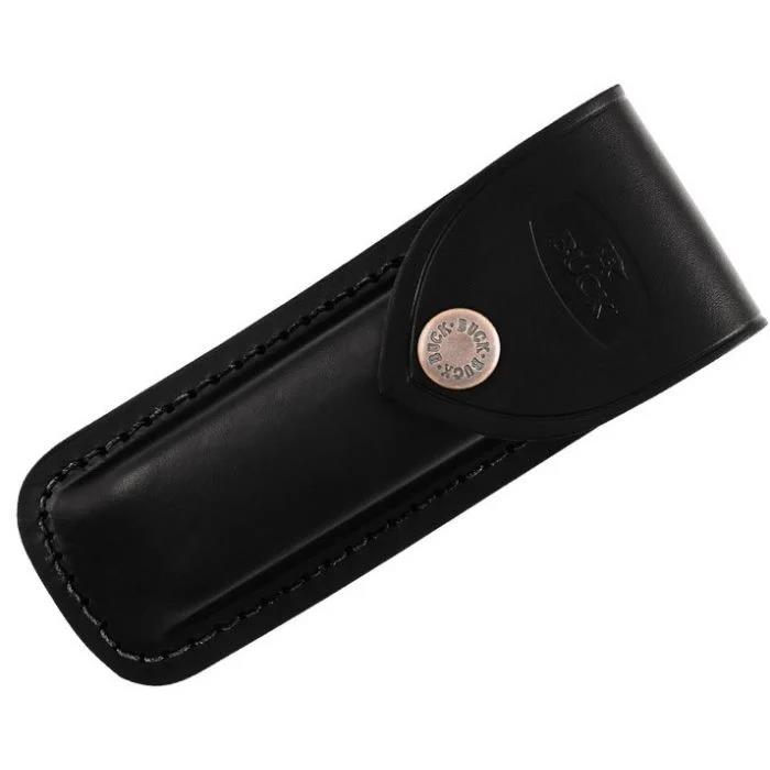 The Buck B110 BRS Folding Hunter Knife With Leather Sheat is a classic and traditional favourite. The knife features brass bolsters with genuine crelicam ebony handle scales, and razor sharp clip point, 3 3/4'' (9.5 cm), 420HC stainless steel blade. Securely locks in the open position with the lock back design. It folds down to a convenient 4 7/8" (12.4 cm) when closed and comes with a genuine leather sheath so that it can be carried on your belt. The knife was designed for hunting but is perfect for any task requiring a large folding knife.