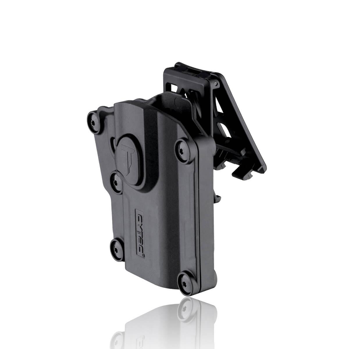 Cytac Mega-Fit polymer holster features adjustable screws to fit 80+ Pistols. For users owning multiple guns, simple and effective design helps achieve a versatile usage. 360-degree rotation and option of 7 carrying ways make a perfect fit in every application.
