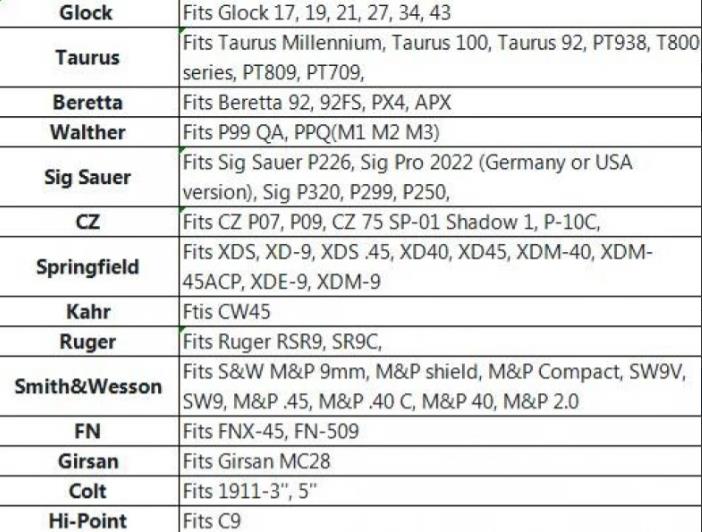 Adjustable to fit the Most Popular Pistol Brands of Glock, Beretta, Sig Sauer, Taurus Etc. even with small suppressor and optics (see additional pictures)