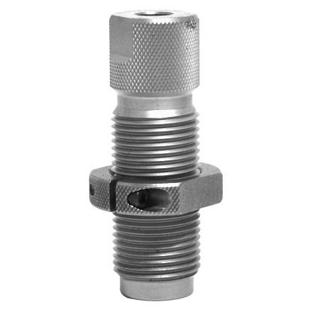 This die removes the flare from the case mouth and crimps case mouth around the bullet while maintaining a sharp edge for proper head-space. Improves feeding of reloaded cases in semi-automatic handguns
