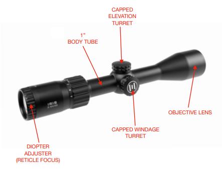 adjustments. The IRIS features 1/4 MOA click adjustments.