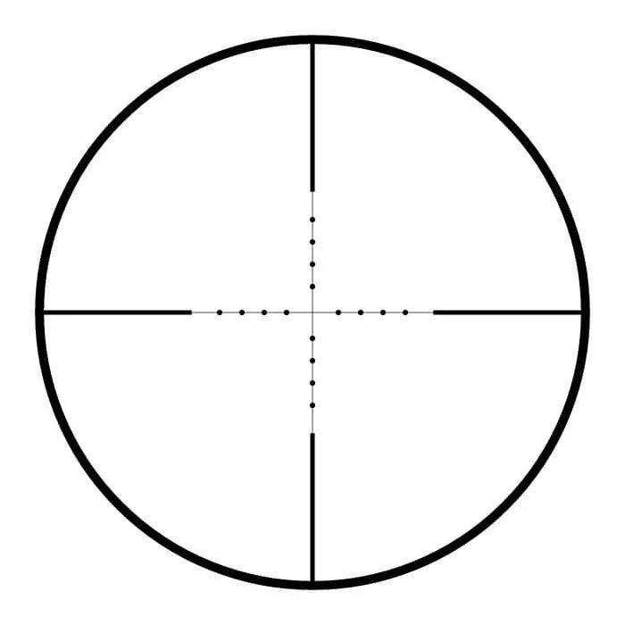 The classic Mil Dot features multiple aim points for hold-over and hold-under. Accurate mil spacing on 10x, featuring 4 Mil Dots in each direction