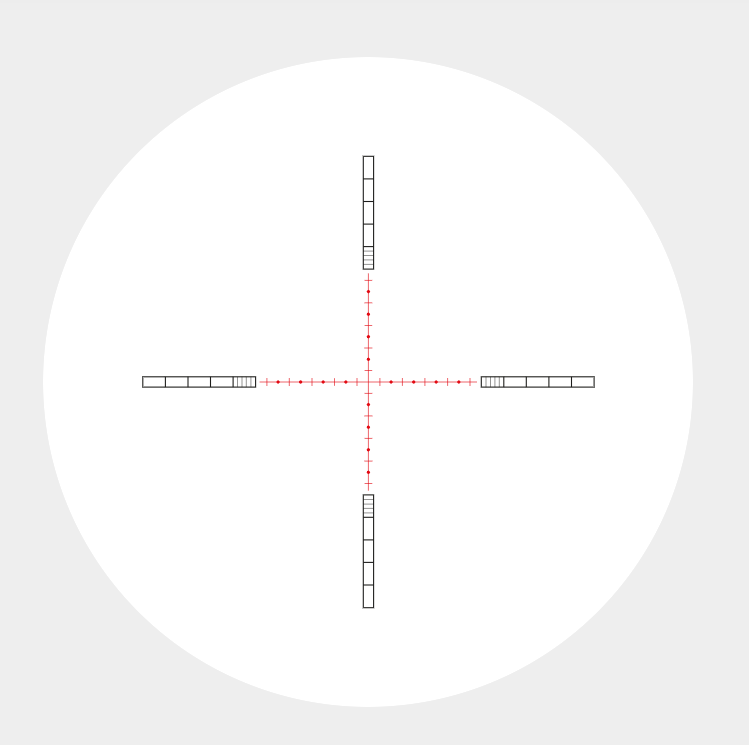 One of the additional benefits of the 10x Half Mil Dot is the mil spacing and 0.2 mil spacing segments of the hollow bars which can be used to accurately range find targets