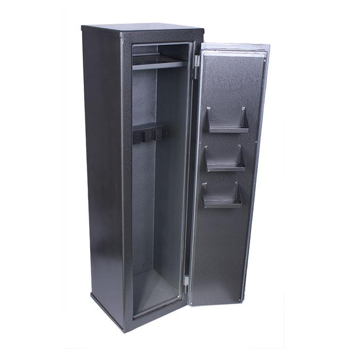 The Magnum MB3 Rifle Safe – An all purpose safe with space for 3/6 rifles, an upper shelf for valuables, jewellery, and handguns as well as 3 shelves on the door for accessories.