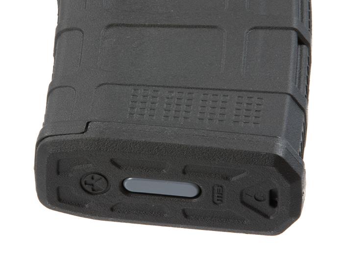 The PMAG 30 GEN M3 also includes a redesigned bolt catch notch in the rear of the magazine that provides increased bolt catch clearance, while an over-travel stop on the spine helps ensure the magazine will not over-insert on compatible weapons. Low profile ribs and new, aggressive front and rear texture give positive control of the GEN M3 in all environments, and a paint pen dot matrix has been added to the bottom panel of the body to allow easy marking for identification. The new, easy to disassemble flared floorplate aids extraction and handling of the magazine while providing improved drop protection, but is slightly slimmer than before for better compatibility with tight double and triple magazine pouches. An included pop-off impact / dust cover can optionally be used to minimize debris intrusion and protect against potential damage to the top cartridge during storage and transit.