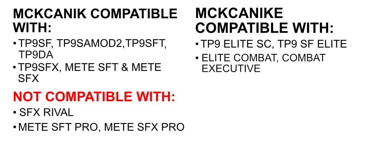MCKCANIKE is compatible with TP9 ELITE SC, TP9 SF ELITE, TP9 ELITE COMBAT & TP9 ELITE COMBAT EXECUTIVE