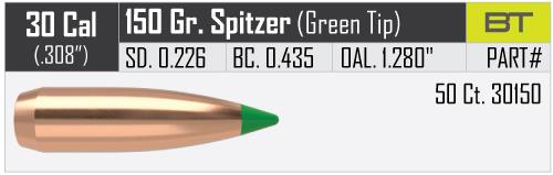 P 30 Cal (.308) 150gr Nosler Ballistic Tip 50's