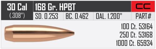 P 30 Cal (.308) 168Gr Nosler Custom Competition 100's