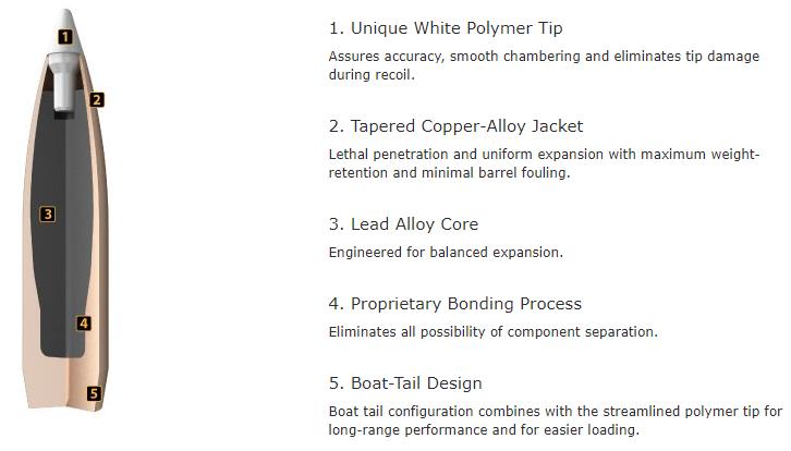 AccuBond represents the most advanced bonded core bullet technology to date. Through a proprietary bonding process that eliminates voids in the bullet core, AccuBond marries Nosler's traditional copper-alloy jacket with its special lead-alloy core. The result is a bullet that flies true, penetrates deep, won't cause extensive barrel fouling, and will retain 60-70% of its weight. The polymer tip helps protect against deformation while initiating expansion upon impact. This is not loaded ammunition.