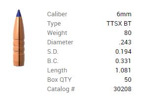 P 6mm (243) 80Gr Barnes TTSX BT 50's