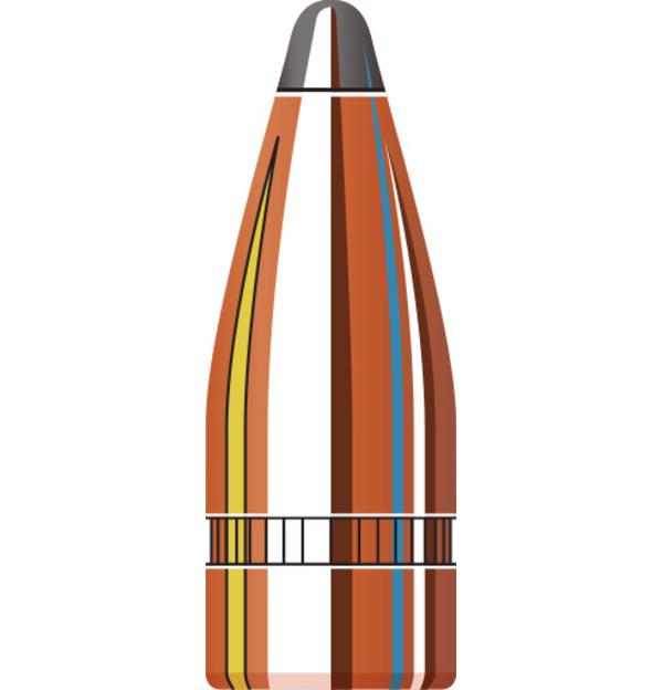 Our traditional line of bullets feature exposed lead tips for controlled expansion and hard-hitting terminal performance. Most have our pioneering secant ogive design — one of the most ballistically efficient profiles ever developed (see diagram to right). Most feature our exclusive InterLock® design — a raised ring inside the jacket that is embedded in the bullet's core that keeps the core and jacket locked together during expansion to retain mass and energy.