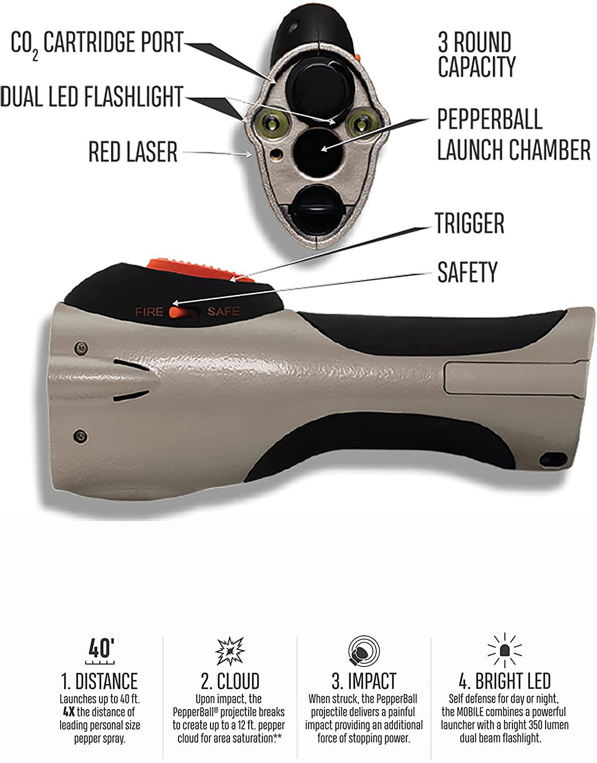 Lightweight yet effective, it requires no waiting period and shoots powerful pepper projectiles that spread a pepper cloud on impact, to help disable a threat from as far as 40 feet away.