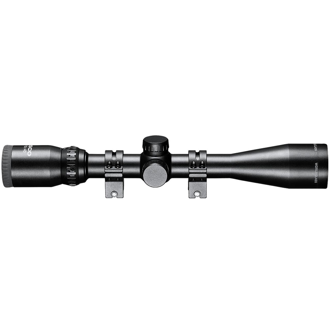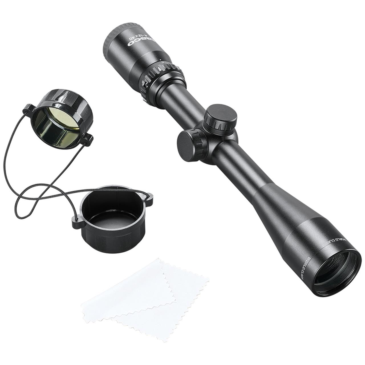If you're looking for a simple to use & setup 4-12x40 for your deer rifle or even for target practice, look no further than the all-new World Class scopes from Tasco. World Class are everything you need and nothing you don't. Waterproof, shockproof, and fog-proof, this classic configuration boasts fully-coated glass for clear, bright, crisp images. On top of that it's lightweight and has a no-snag design for walking through the woods. Setting up this scope can't be easier with the value-added scope rings that we're including.