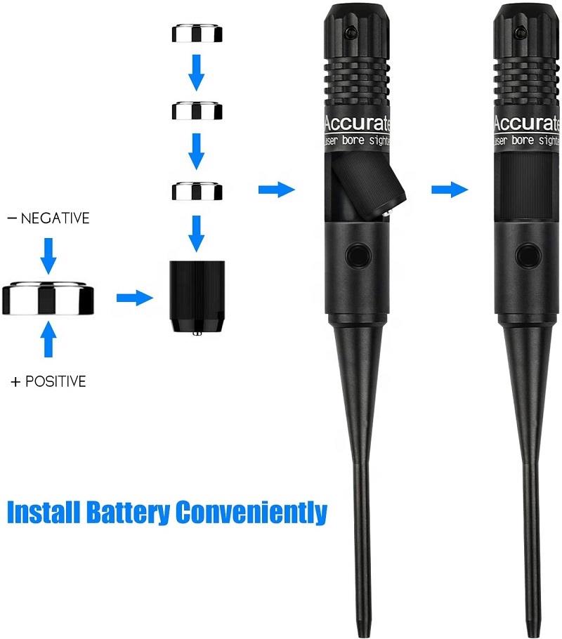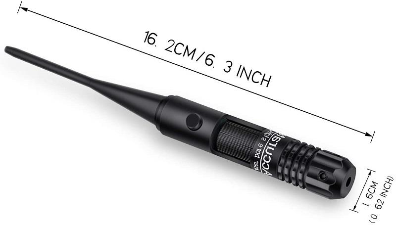 This boresighter is designed for sighting in your rifles and shotguns without firing a shot. The sight will emit a straight red laser beam, providing precise reference for zeroing in your sights or scopes.