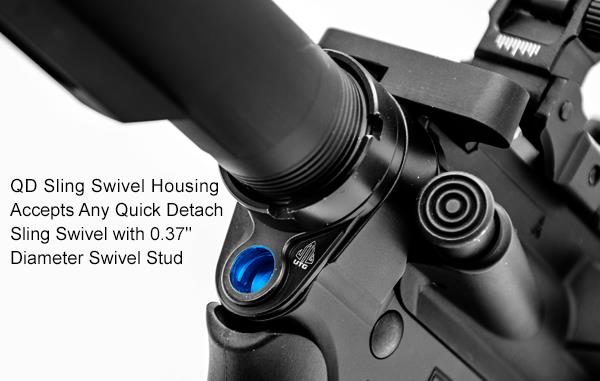 • QD Sling Swivel Housing Designed with Quarter-turn Rotational Over Travel Stops to Restrict Swivel Movement and Prevent Binding Against the Buffer Tube and Sling Tangling