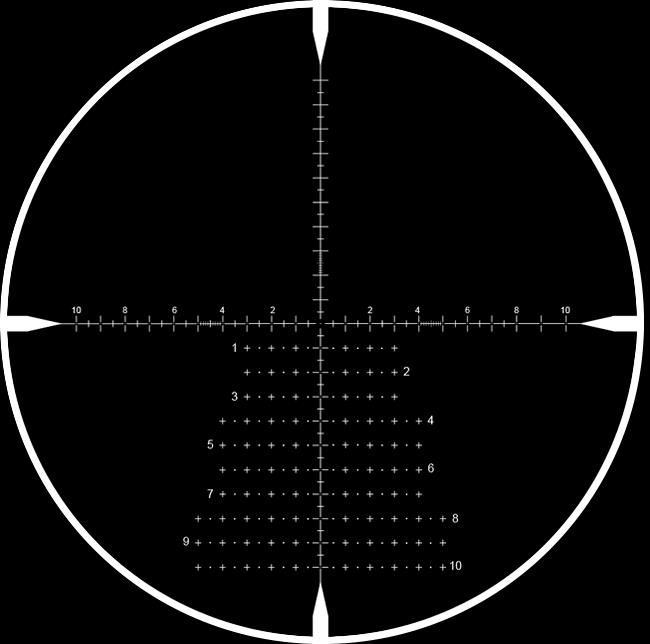 Subtended in 0.5 mil increments with integrated 0.1 mil measuring bars, the RMG allows shooters to apply elevation and windage holds without having to dial the turrets. A floating centre dot ensures a refined point of aim for zeroing and shooting groups, while the heavy bars with chevron ends at 3, 6, 9 and 12 o’clock help draw the shooter’s eye to the centre of the reticle at lower magnifications.